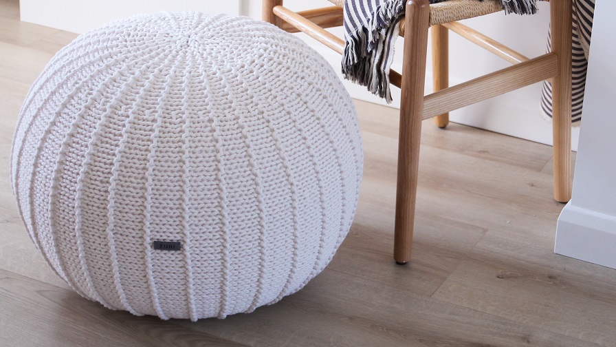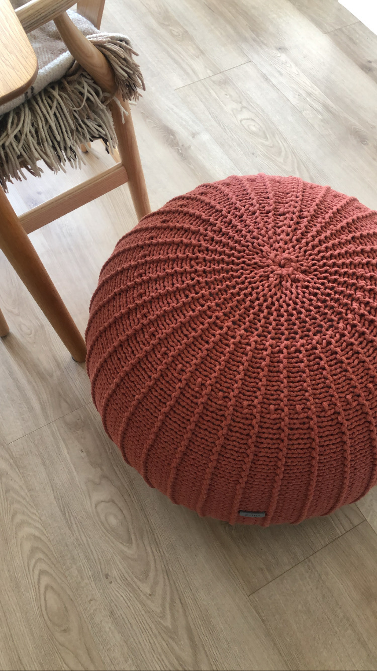 Functional, decorative, and perfect for cosy evenings - our pouffes are all of that and more. Knitted pouffes and crocheted ottomans are constructed from durable 100% cotton cord. Inside, a polystyrene bag holds beans to give it a nice, sturdy shape.