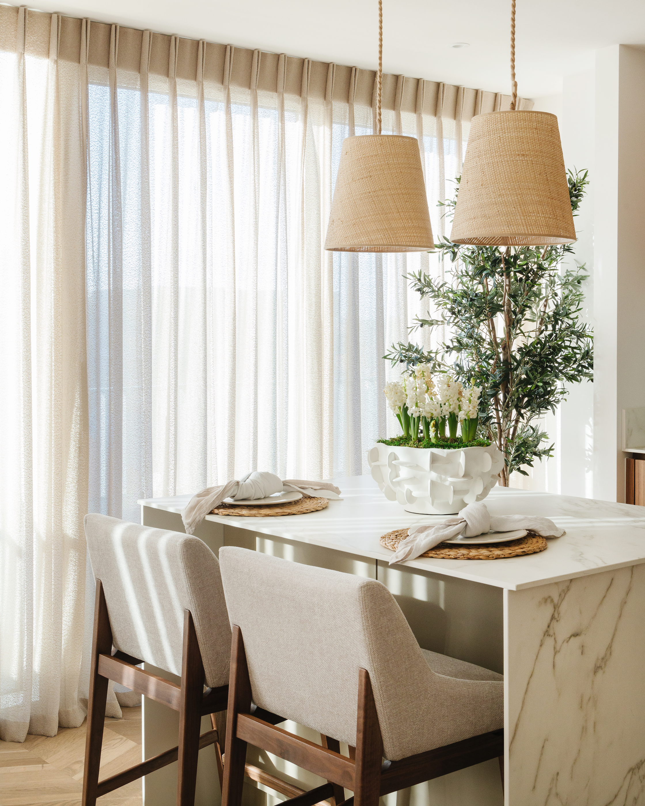 In the heart of London’s Fulham, this two-bedroom apartment was transformed into a tranquil haven by our team, inspired by natural tomes and simple textures creating a bright and light flooded interior.