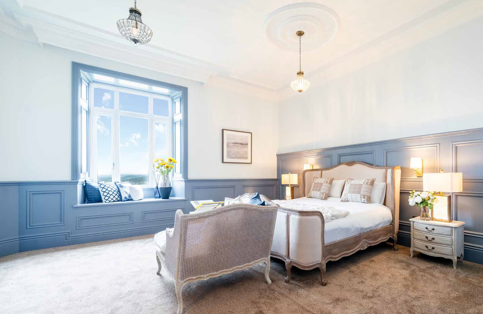 Each room was individually styled with a distinct palette and personality, while maintaining a cohesive visual rhythm throughout. Statement pieces were mixed with understated classics, and every corner was thoughtfully considered—from bespoke upholstery to final styling touches.