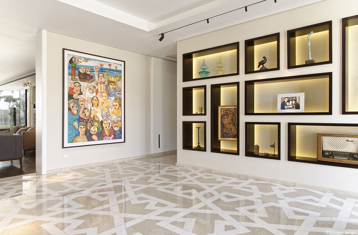 We took over this house which was a single levelled shell overlooking the Pyramids of Giza and worked closely with the contractor to complete the 15000 square foot house. The house was a celebration of the client's passion for Egyptian art, ornaments and history. We successfully reinterpreted their passion into a contemporary showcase which is practical and functional in every corner.