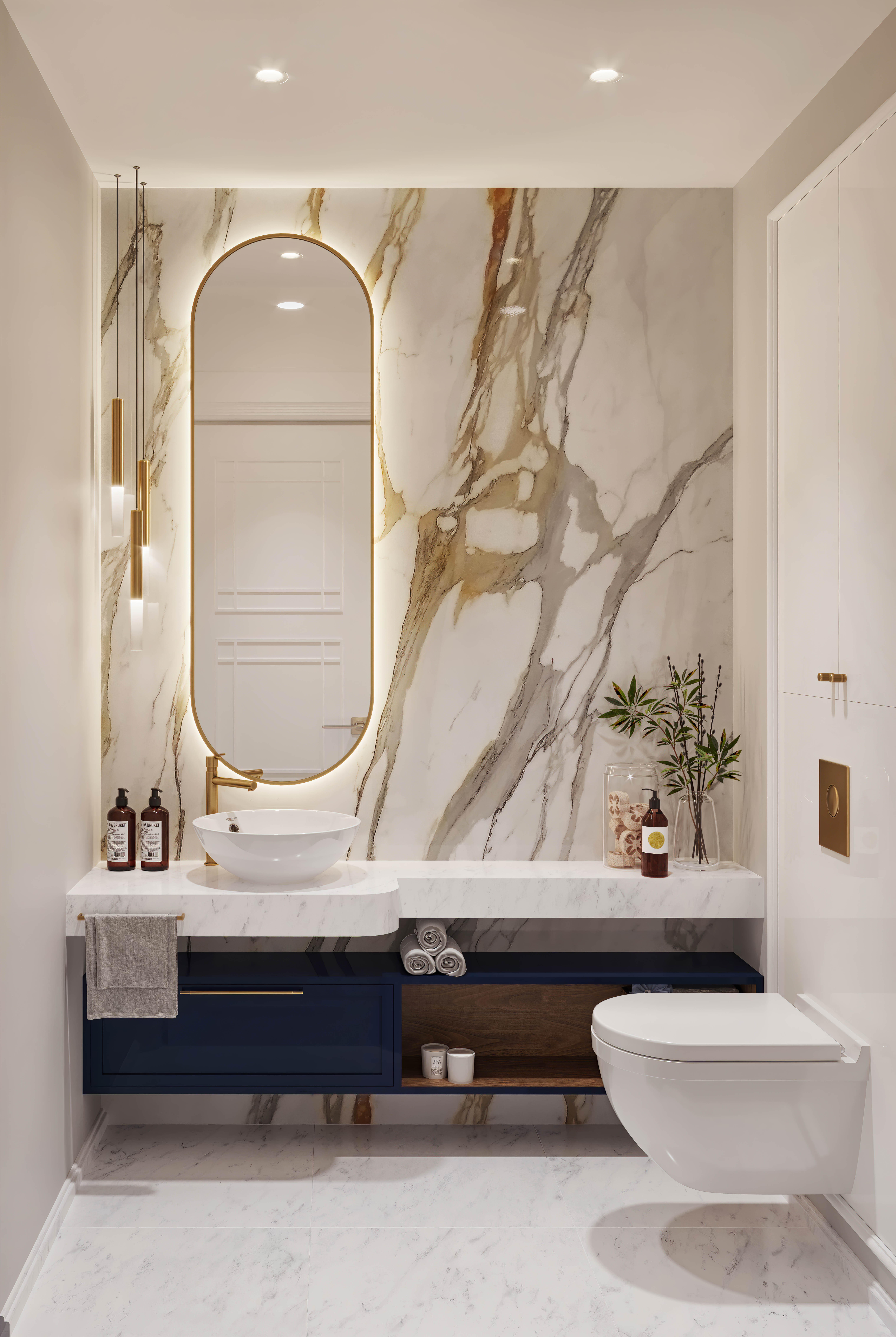 We designed a wine cellar that faces both the entrance hall and dining room, serving as a feature of the home. A cosy piano corner was also added, bringing a personal touch that reflects the client's lifestyle. In the living area, we designed a custom fireplace wall with textured wallpaper and brass accents as a warm focal point, while the television is hidden behind the foldable panel to maintain the room's calm aesthetic.
