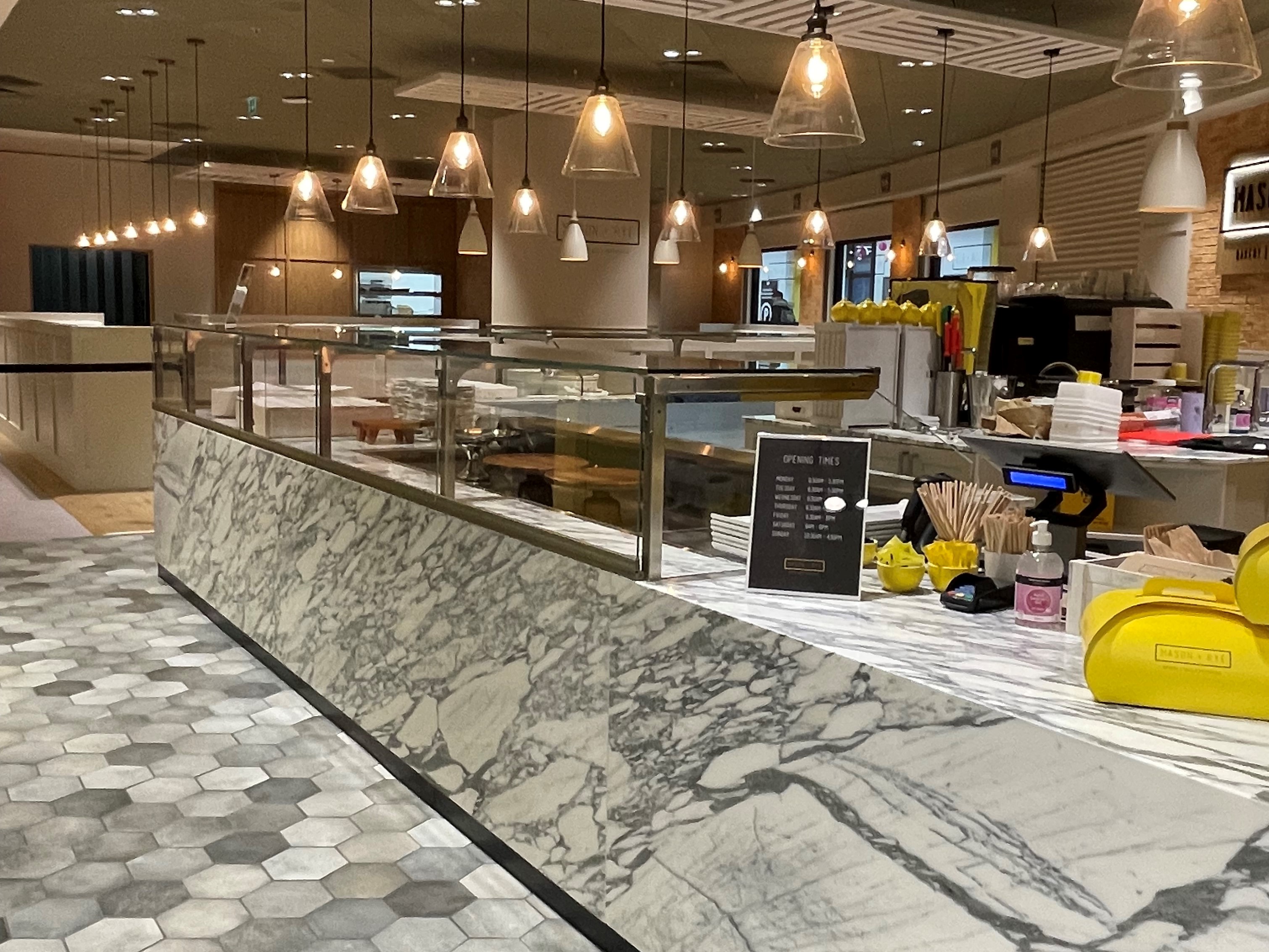 This was a turnkey project; all aspects from manufacturing, lighting, plumbing, flooring through to installation; joinery and servery counters were also designed and built by Octagon. The restaurant required capacity for 80 covers with a prep kitchen; marbled and chilled serving area and multi-functional seating arrangements. We were also involved in the engineering design for fire and security shutters as the site was within a well-known shopping centre. Mason and Rye is part of a chain of restaurants. We were tasked with taking the restaurant concept and progressing it so that each site has its own identity.