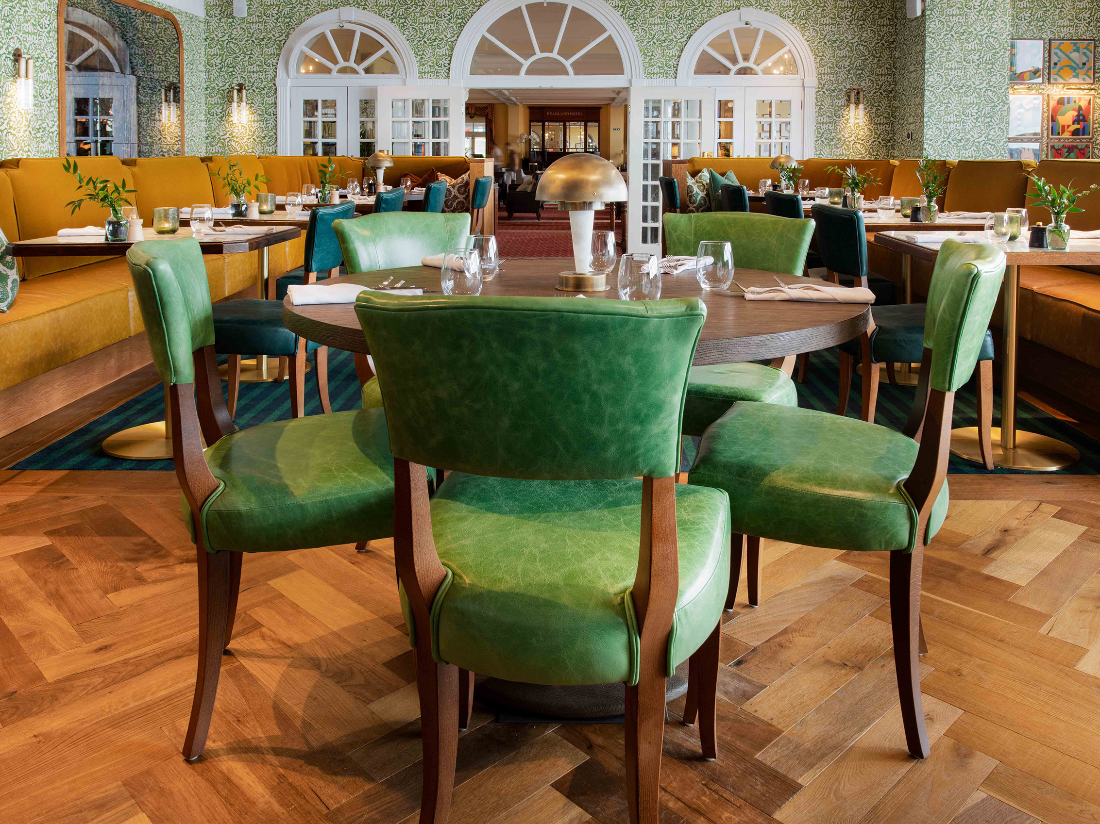 Restaurant RenMor, located in the historic Headland Hotel in Cornwall, underwent a £3 million renovation led by DO Design Studio. The project aimed to create a versatile, welcoming space that honours the hotel's legacy while accommodating high traffic. Woodworks by Ted Todd collaborated with the design team, supplying bespoke wooden flooring from their Aged collection, specifically Velentre Herringbone and Extra Wide Plank, which provided durability and a timeless aesthetic.