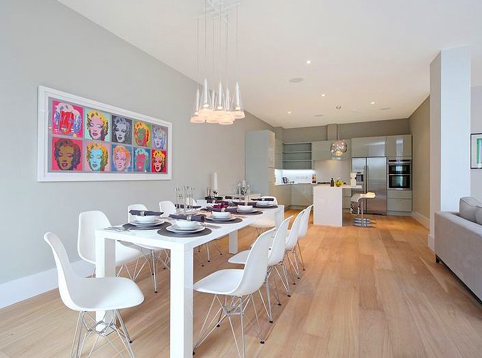 A contemporary loft apartment in central London combining designer classics, luxurious finishes and colour pop.