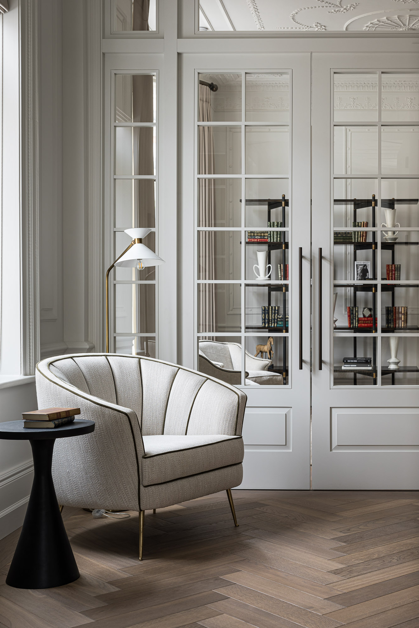 Contrasting beautiful with the traditional detailing of the home, such as the wall panelling and ceiling mouldings, the multi-tonal Fendi Prime 120mm Herringbone add an on-trend feel. Set against a neutral backdrop, the deep brown tones of the boards elevate the space and add subtle interest and warmth that draws the eye in.