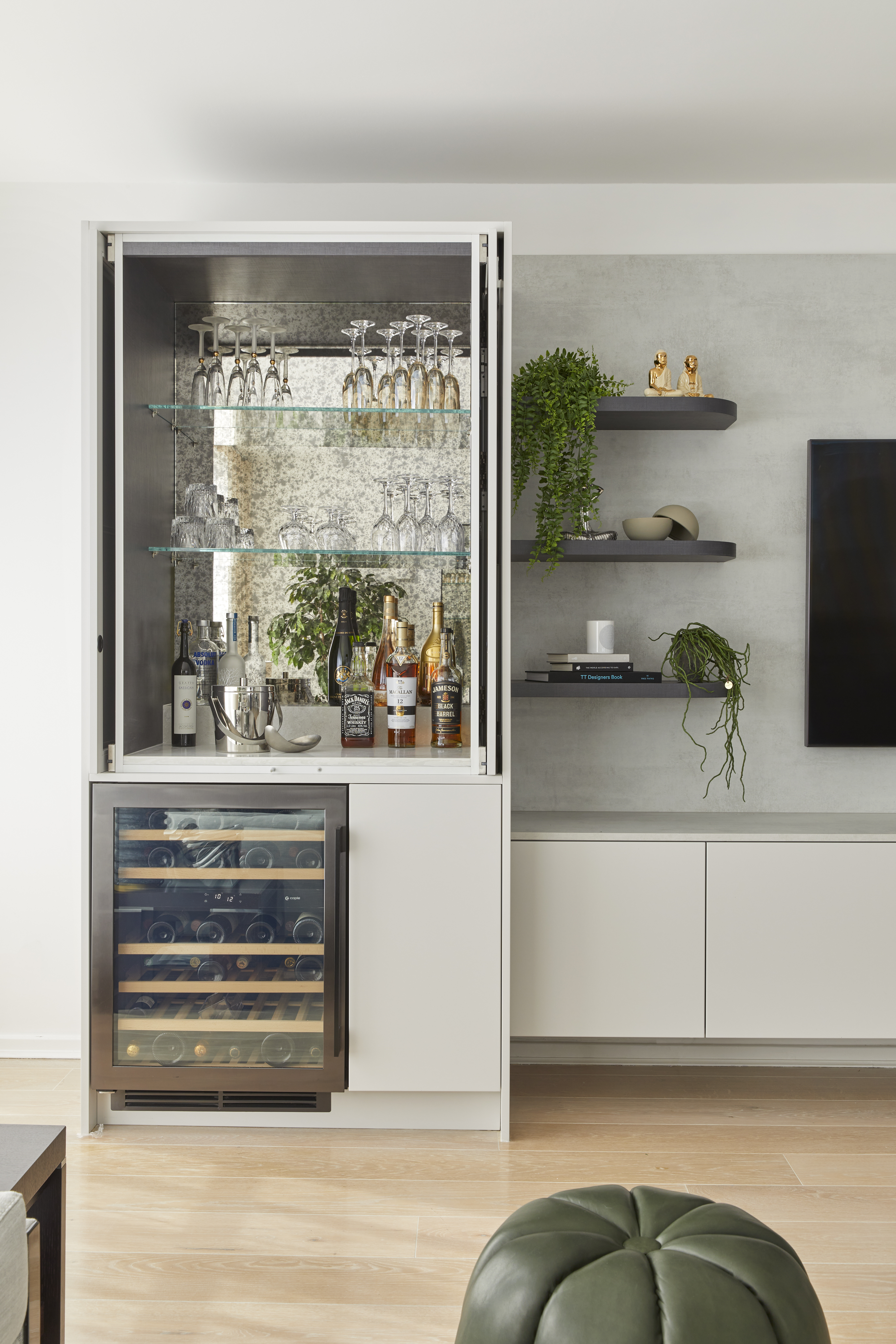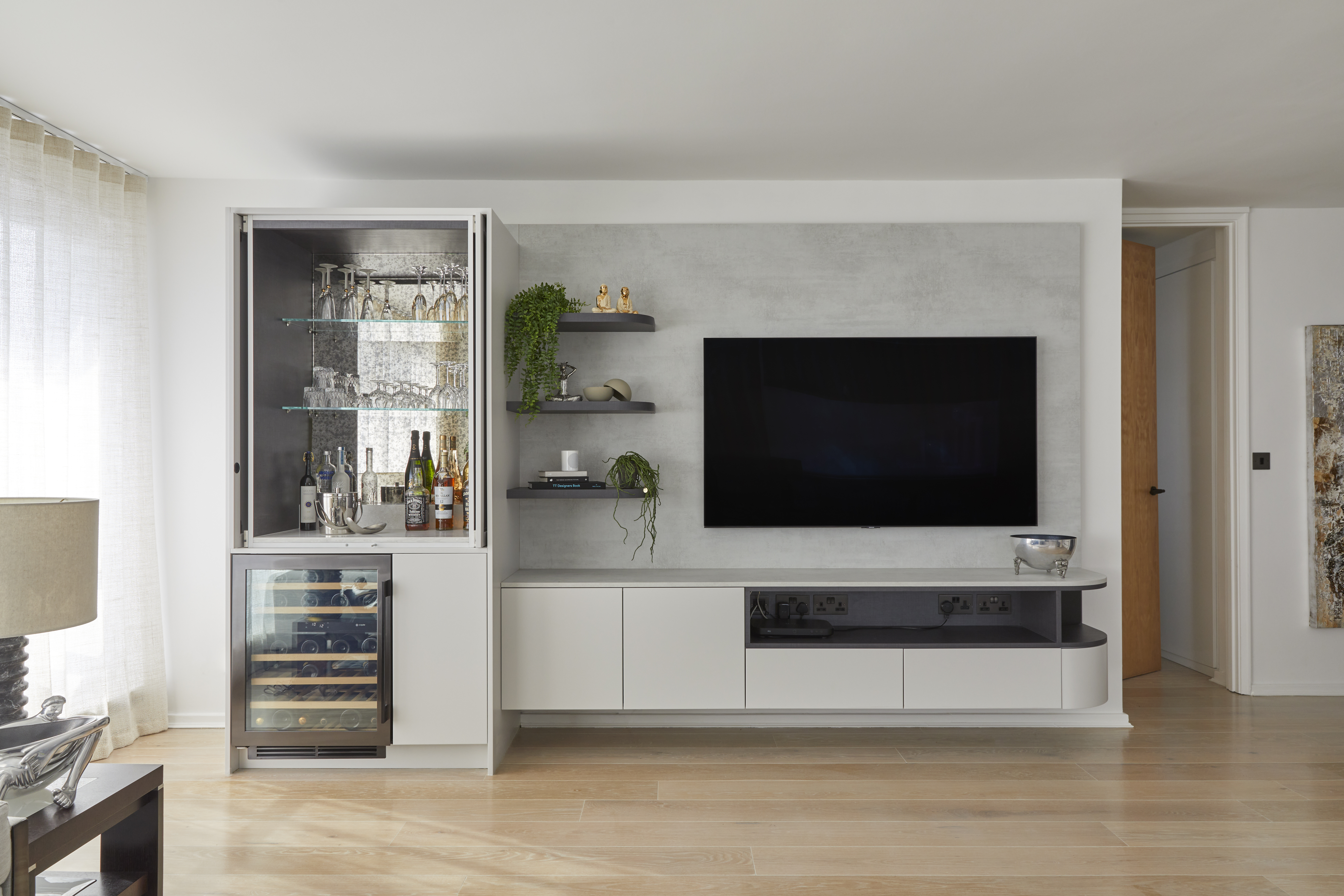 Nestled in the esteemed St. Johns Wood area, this apartment yearned for a revitalizing transformation. The client, who divided their time between the South of France and London, desired a space that exuded elegance and contemporary allure while maintaining an air of luxury and comfort. Implementing new electrical designs, we introduced ambient mood lighting to imbue the home with a heightened sense of opulence. Additionally, we crafted a custom-made bar, incorporating a vast TV and entertainment zone to elevate the apartment’s leisurely appeal, and a bespoke marble coffee table with 3m round rug for pieces that were personal to the client. We went on a journey with our clients to make their home feel like you are living your best, most elegant version of your life, but also like you want to kick off your shoes, grab a glass of wine, and relax!