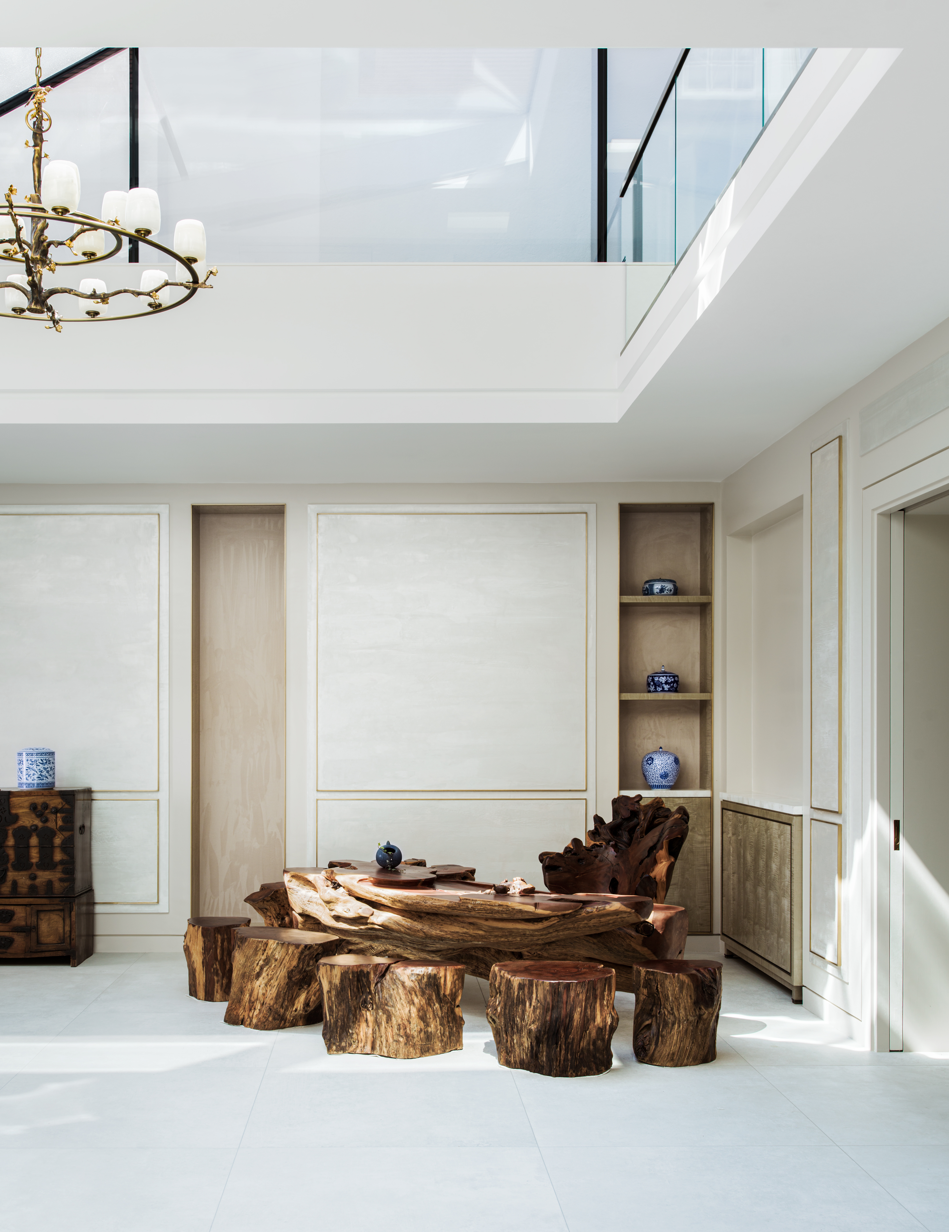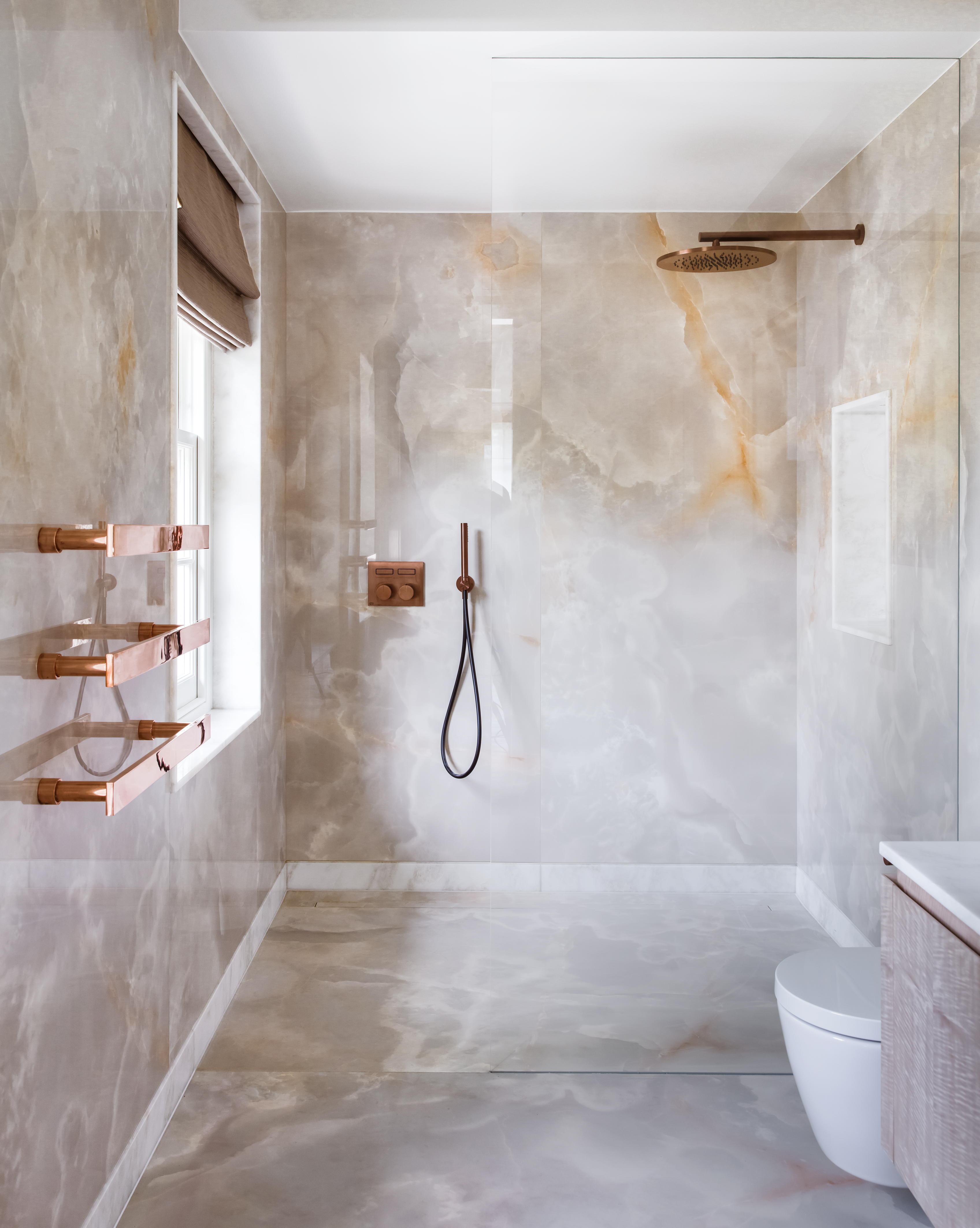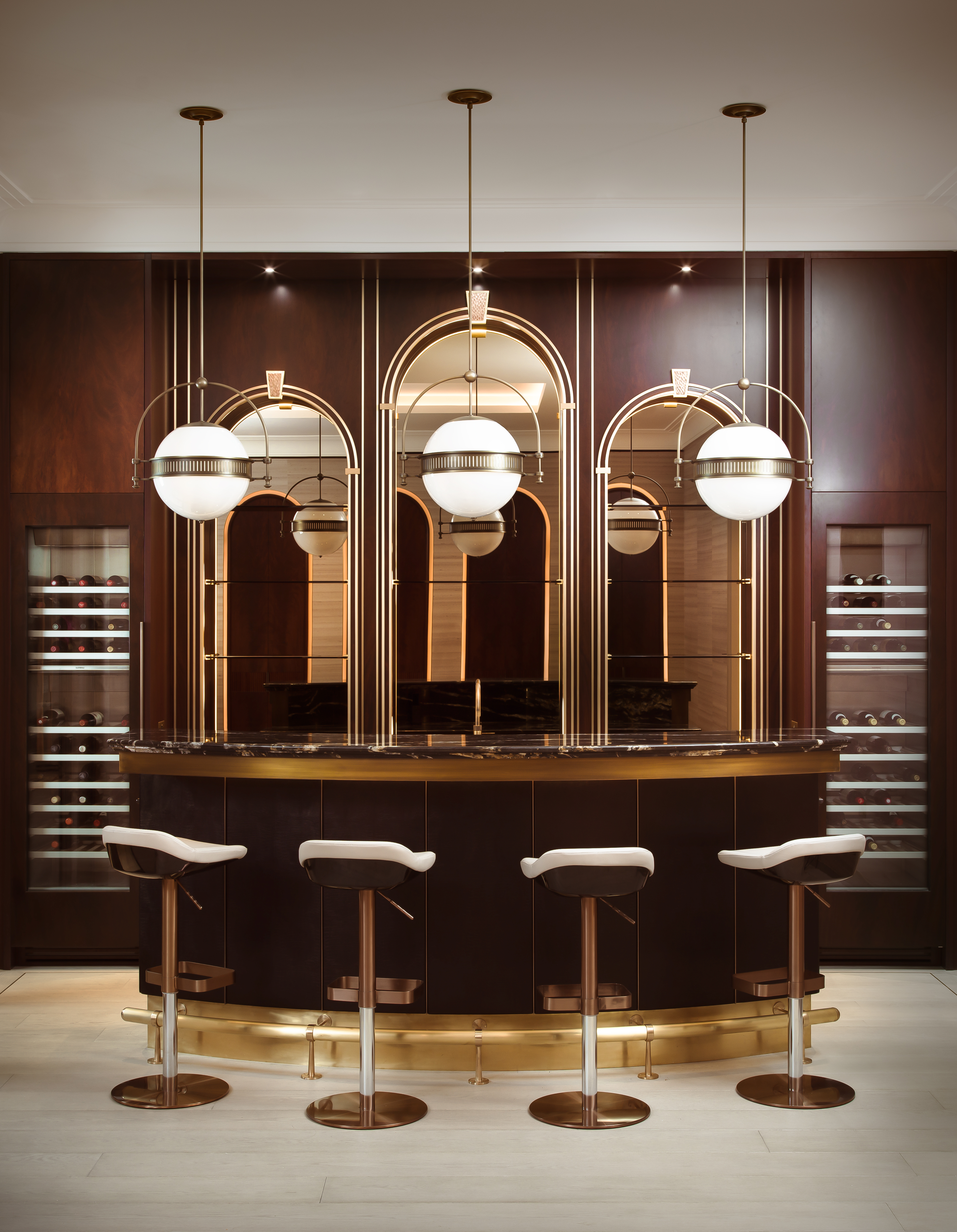 You are here: LARA ET AL project St Johns Wood_Family Home See LARA ET AL profile Gallery Mahogany and Leather Wardrobes Porcelain, Coppper and Marble Details Lave Flow Polished Plaster Walls Brass and Mahogany Bar Glazed Courtyard Tea Room Brass Balustrade and Mahogany Handrail