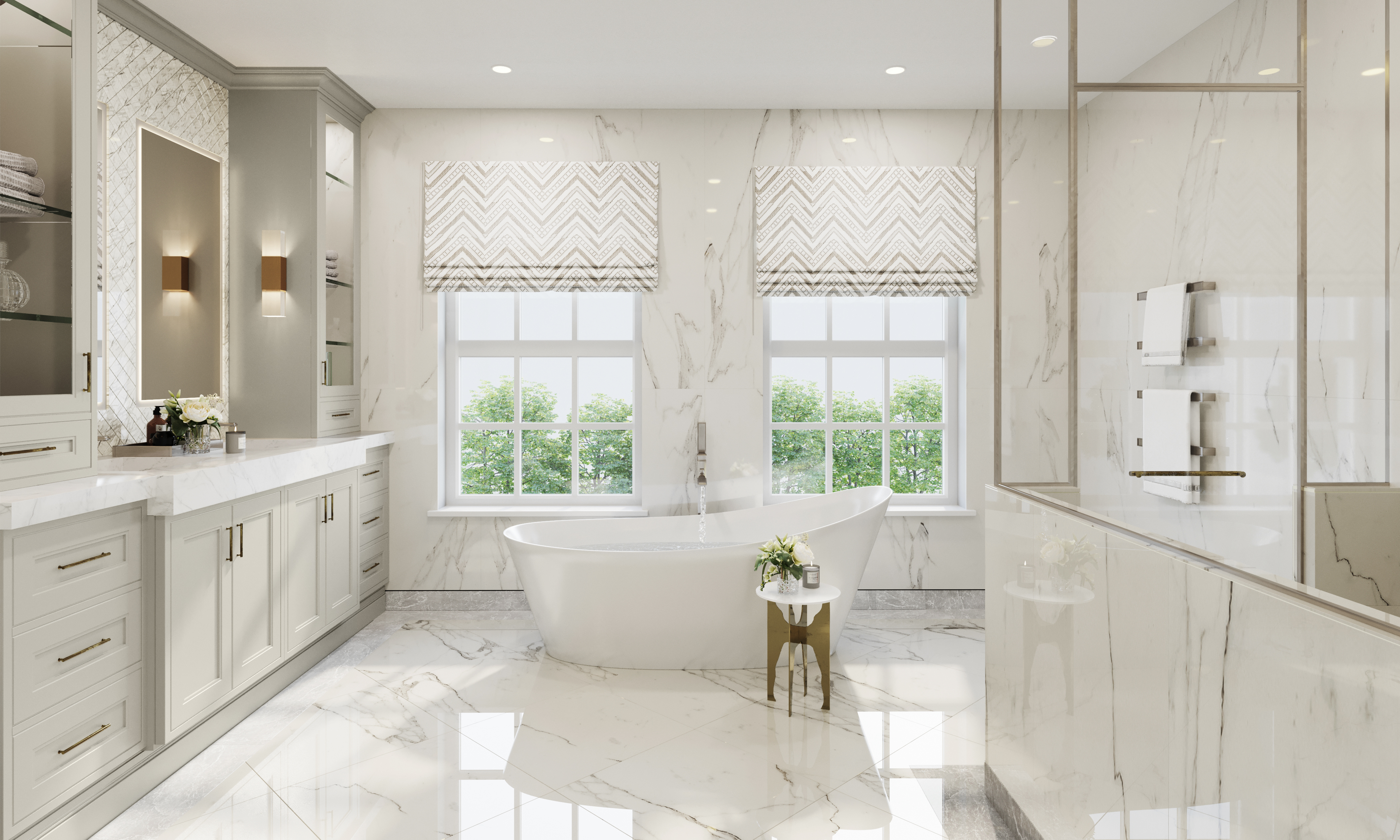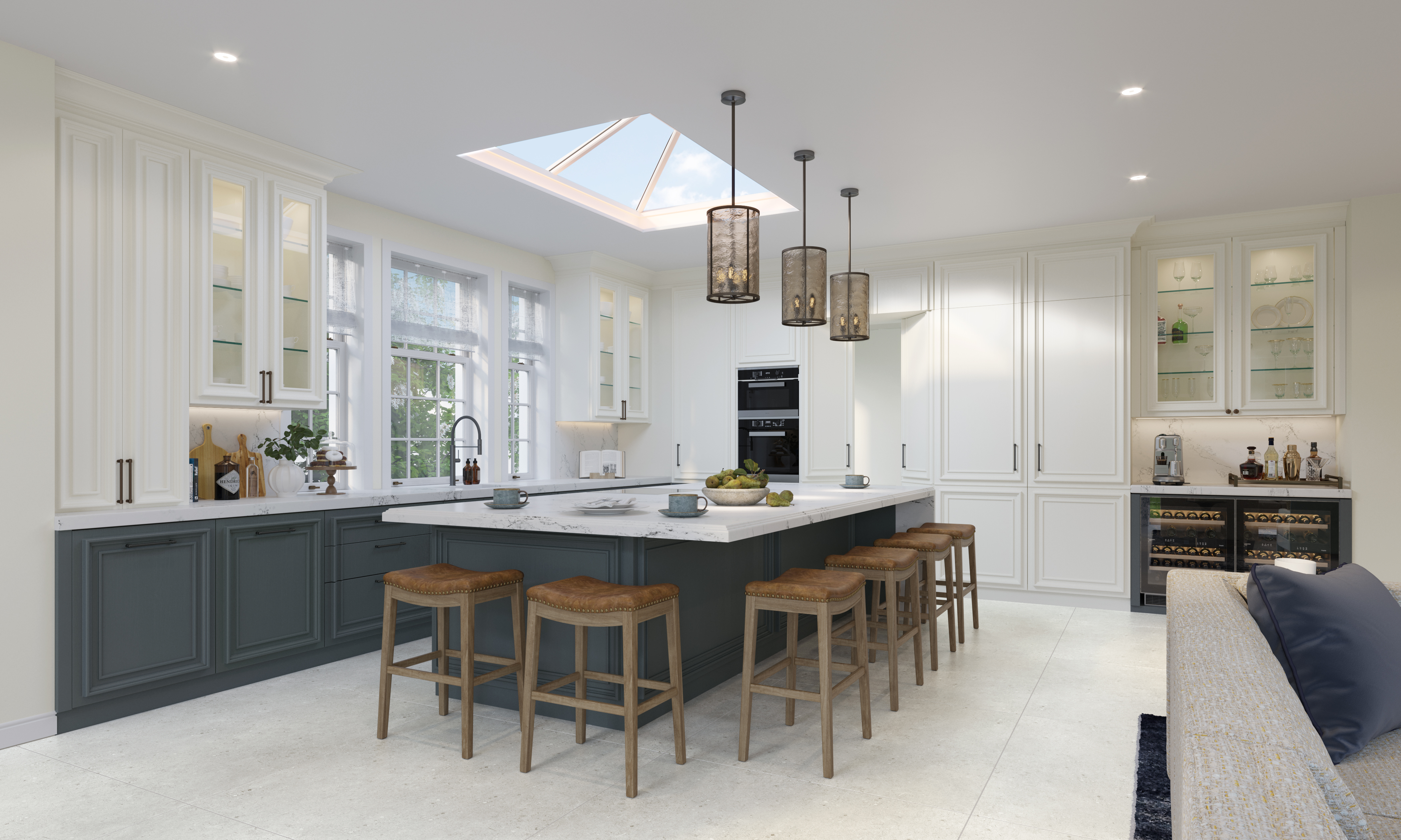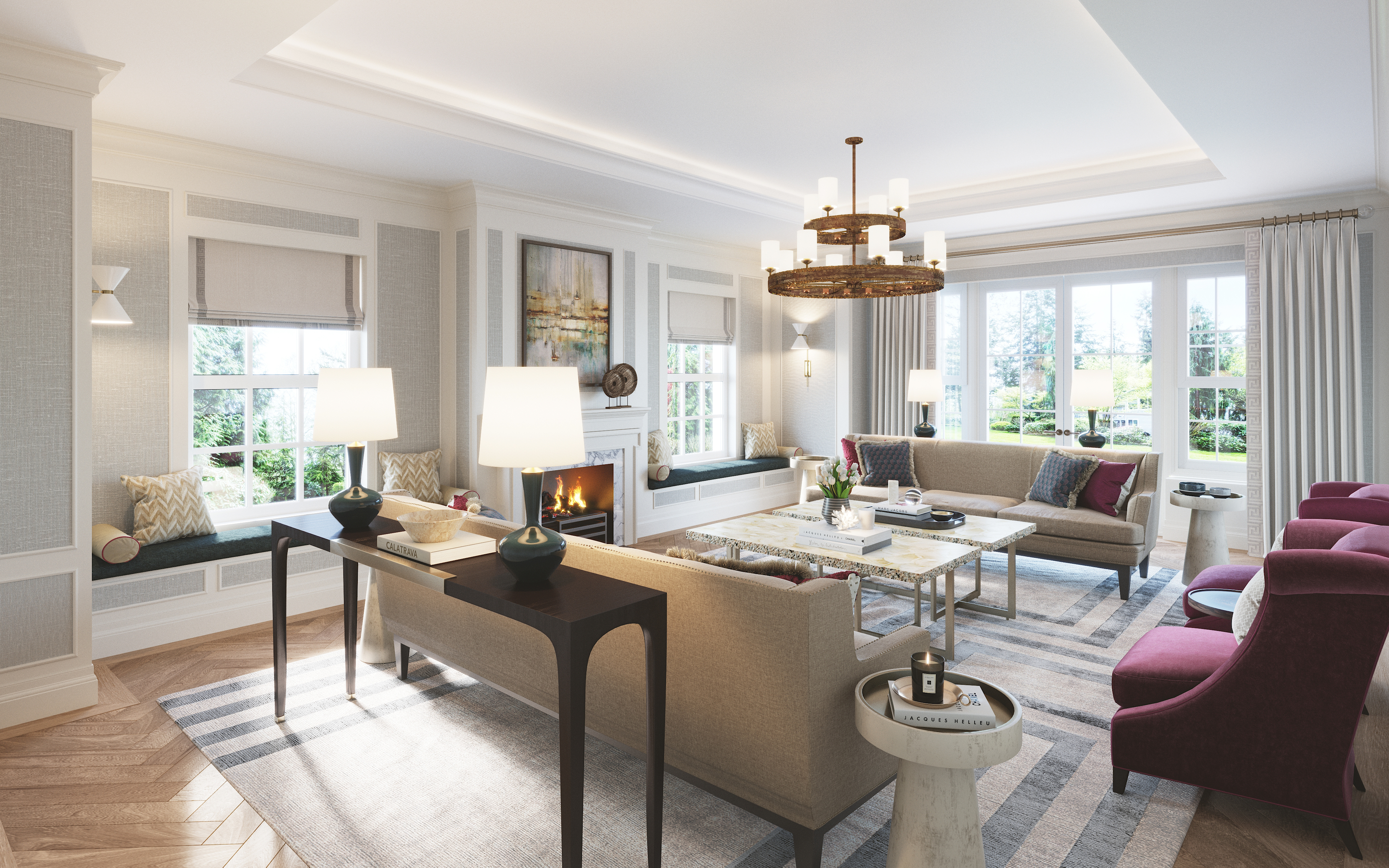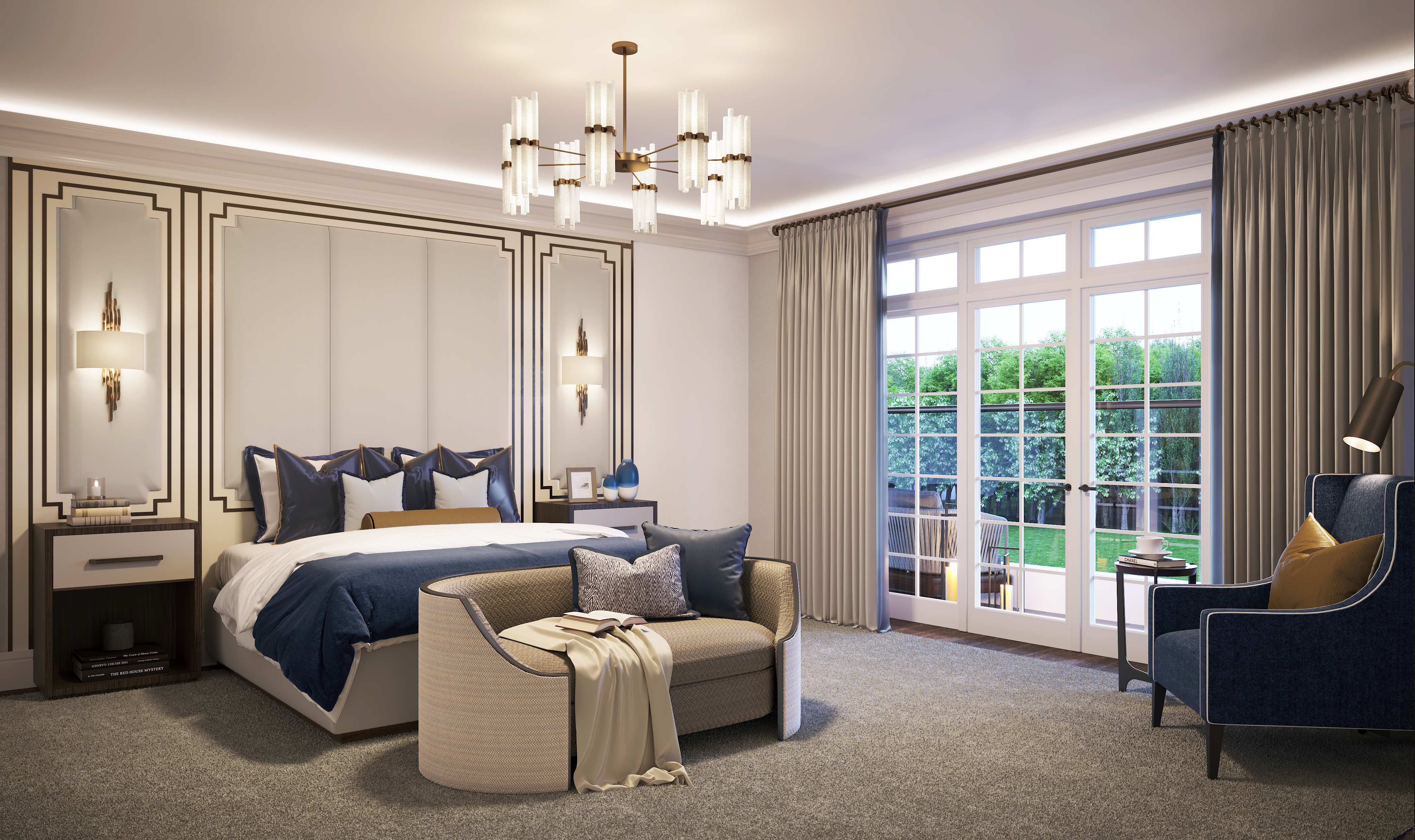 You are here: Q Design House project Surrey Family Home See Q Design House profile This beautiful home is designed for a family combining luxurious and classic elements with contemporary features. Gallery Large and welcoming entrance hall with feature artwork and furnishings Spacious master bathroom with soft lighting, perfect for relaxation in the standalone bathtub Open plan living space with pops of colour from statement armchairs Master bedroom scheme in contemporary style Bright and airy open plan kitchen and dining area with contrast panelling Generously sized kitchen island with beautiful natural light