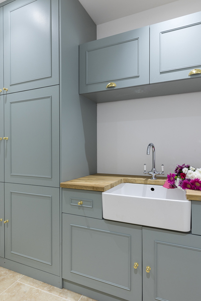 Bespoke cabinets were installed in the utility room to match the character of the kitchen units.