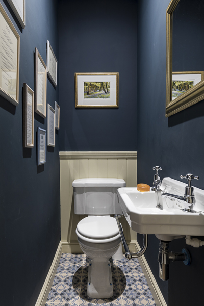 The downstairs guest WC was redecorated using one of the paint colours of the year, dark blue, and sanitaryware in traditional style.