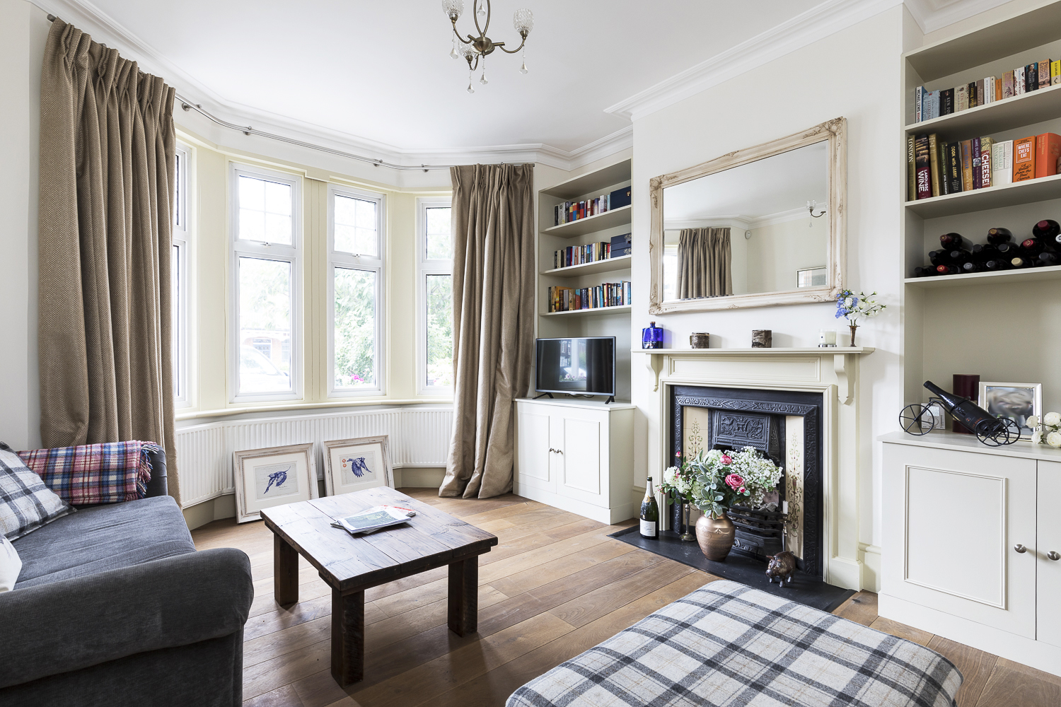 The reception room at the front was refurbished with maintaining a traditional feel and period features, such as the fireplace.