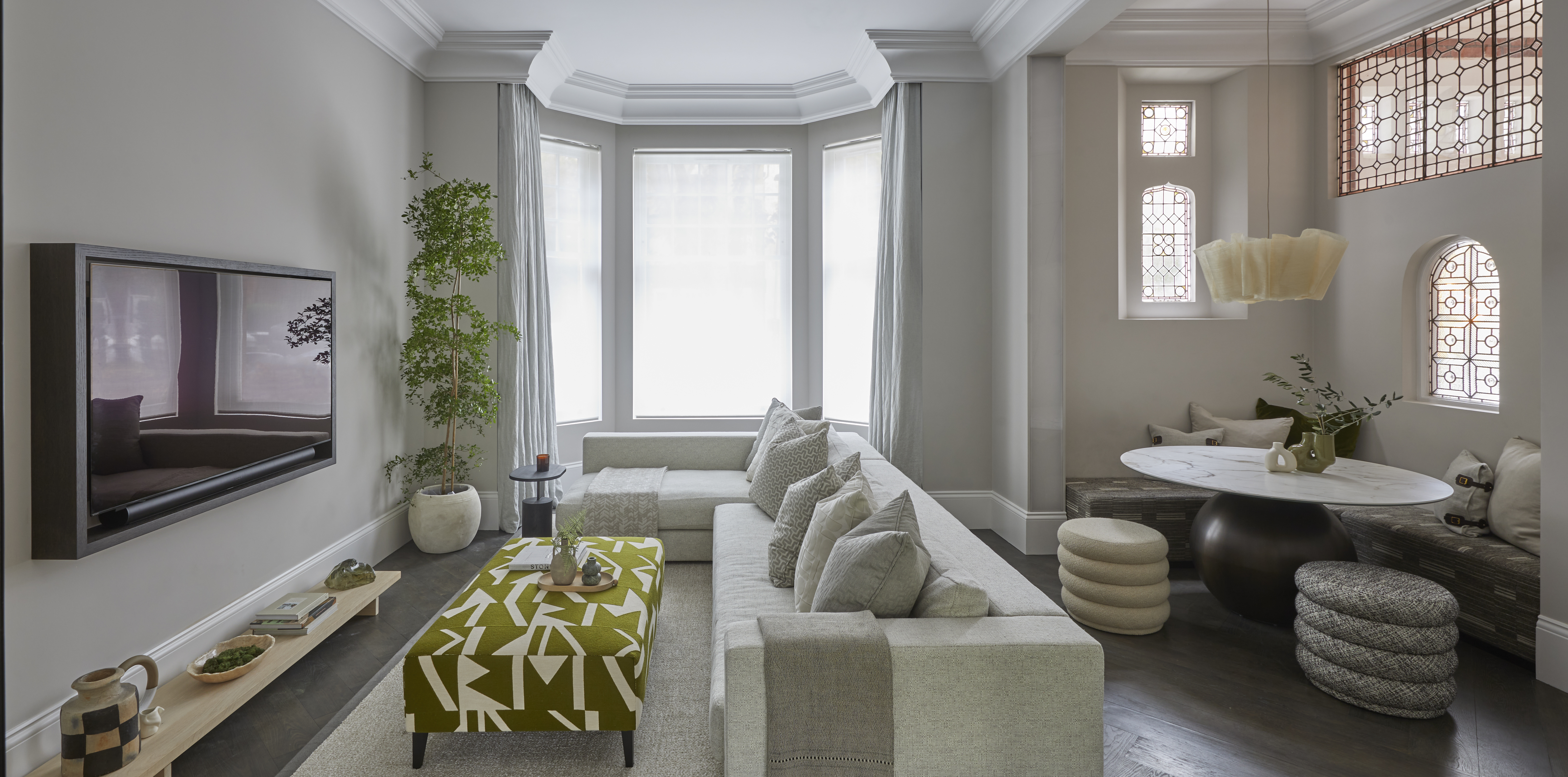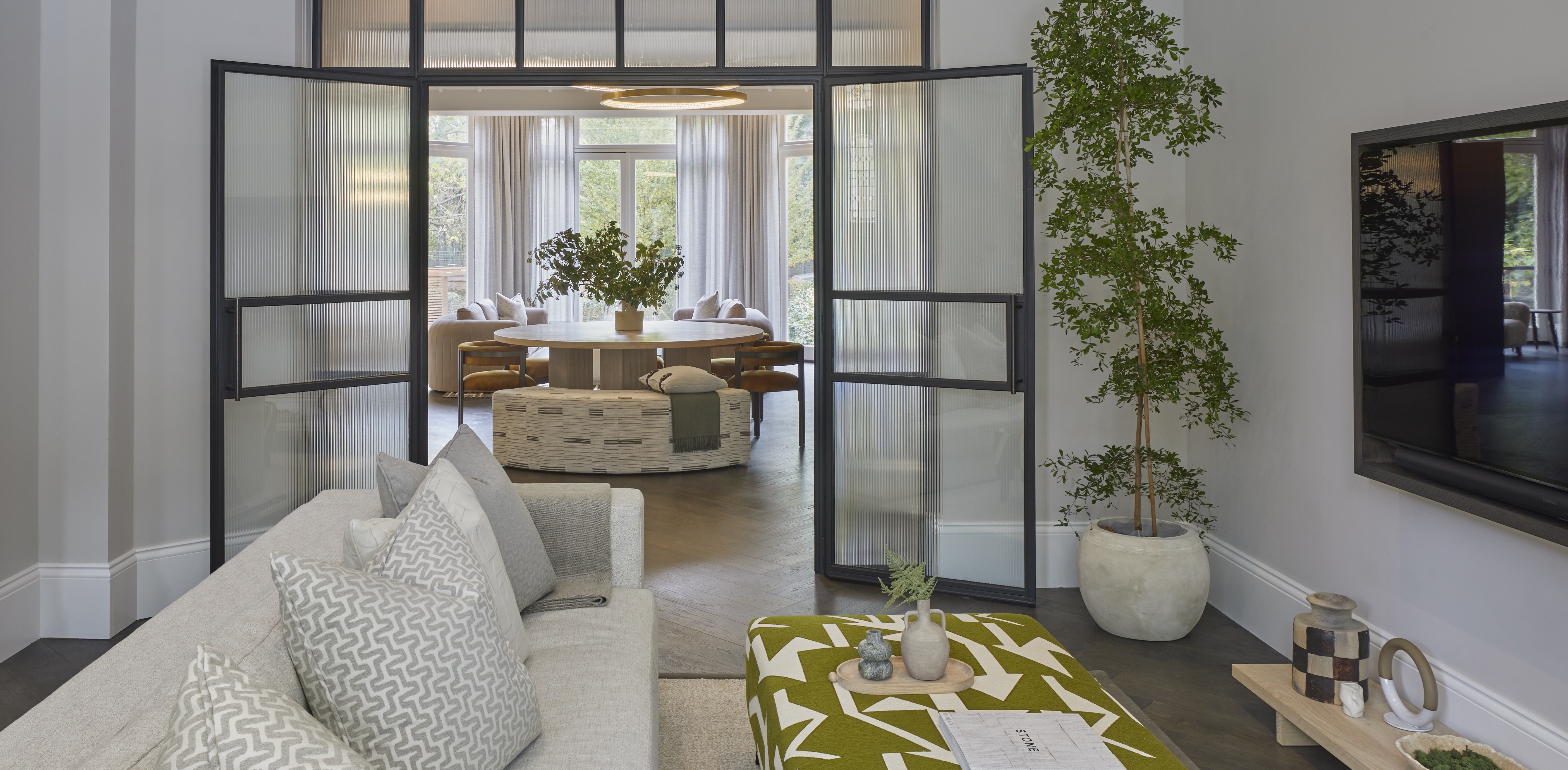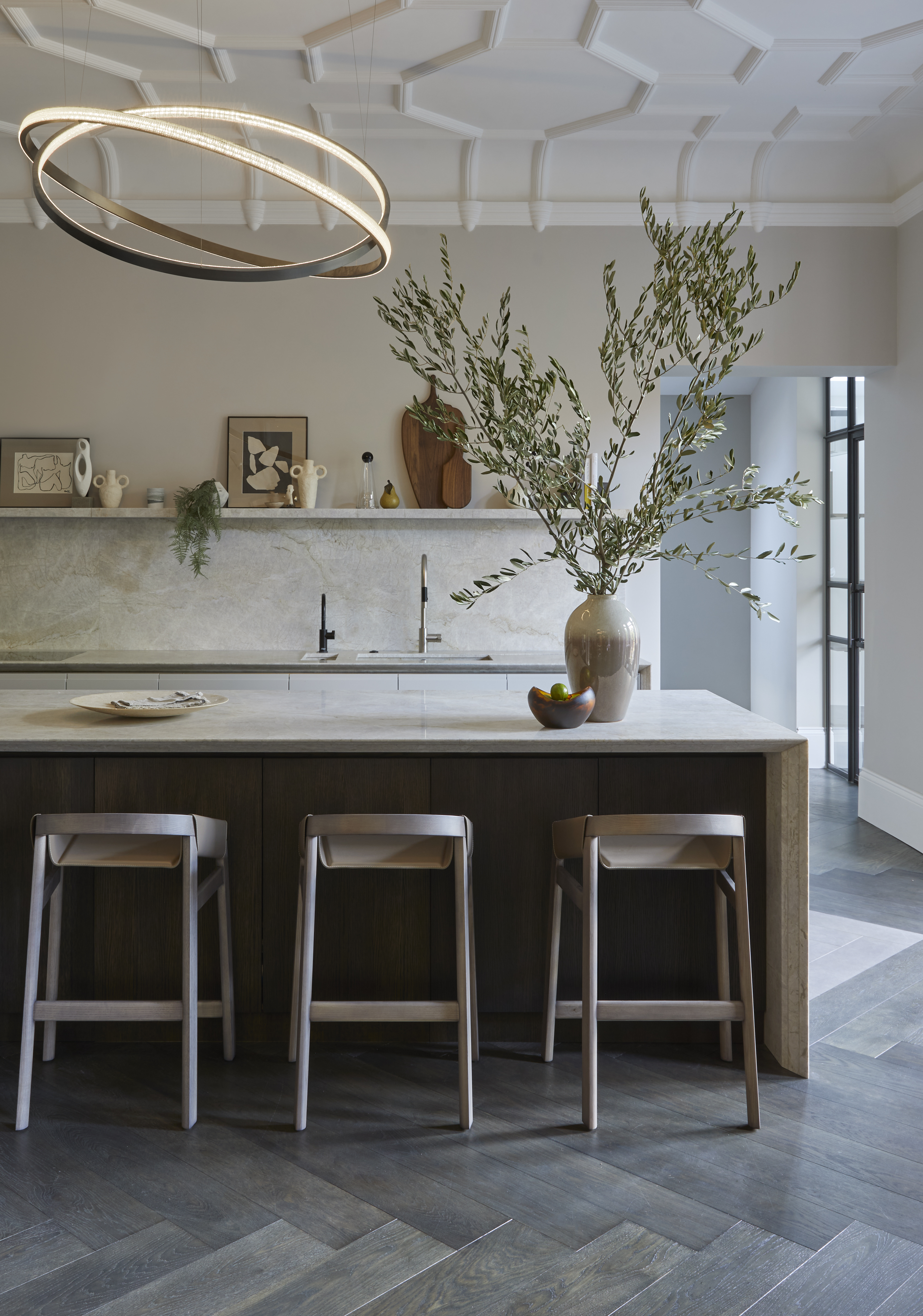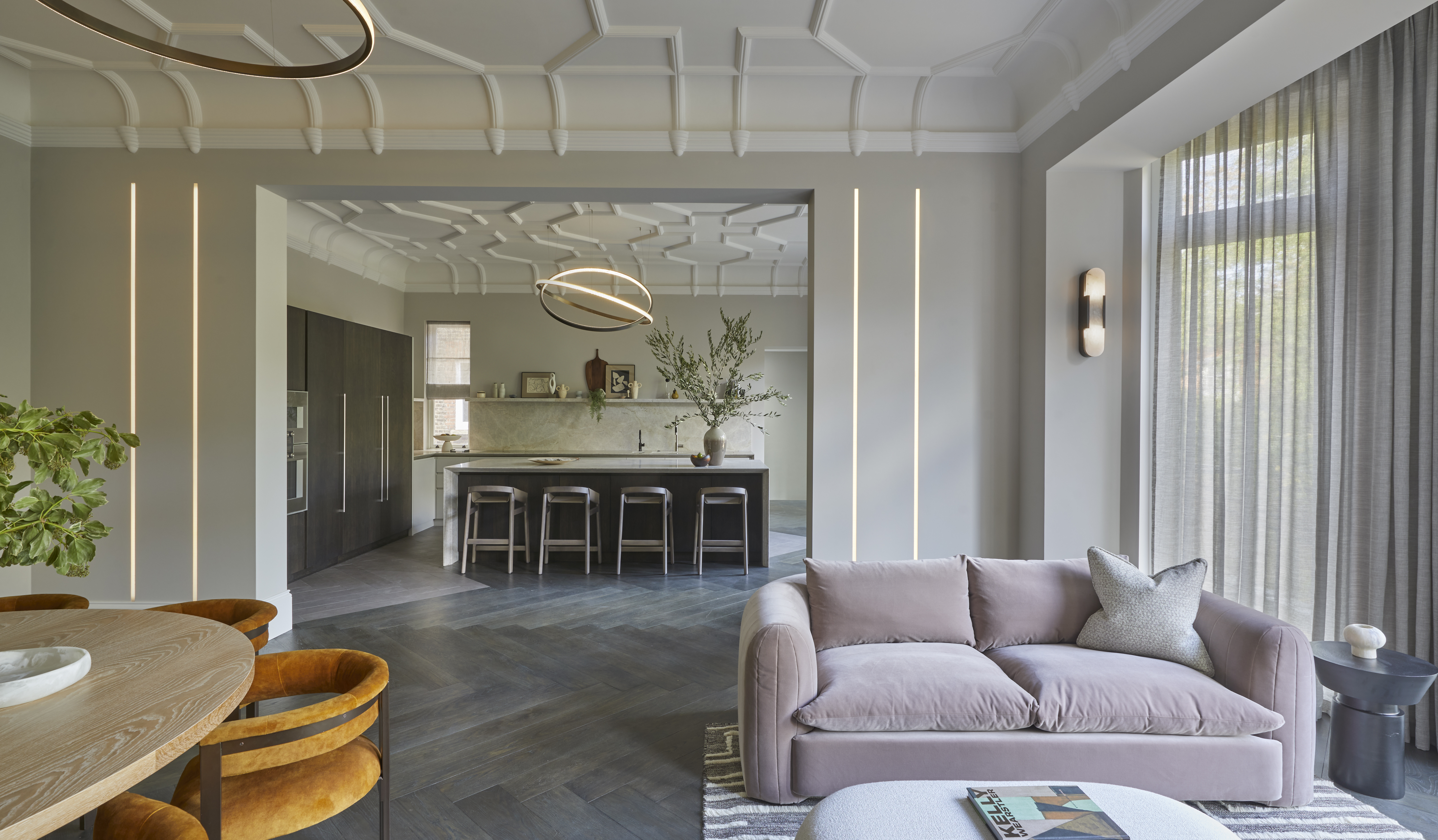 Our clients had previously combined two apartments to form this four bedroom home for them and their three young children. They were unhappy with the layout and function of the property following the initial refurbishment and we were instructed to assist with an internal reconfiguration and an overhaul of the interiors. The end result is a social and hardworking layout. The interior style is sophisticated but exudes comfort.
