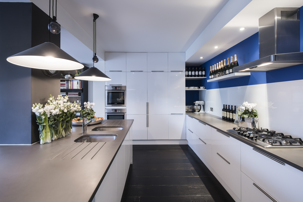 The initial consultation is a time to get to know the family lifestyle requirements, their taste and a chance to look around and spot what needs to be improved. We also actively scout for items that will serve as inspiration for the project. Colour is a major deciding factor which we discuss early on. In this project we settled on the colour blue to be our anchor. Together with the white kitchen units and the black stained timber floor boards, it was a natural conclusion to build the scheme around these colours with a mix of modern and classic furniture.