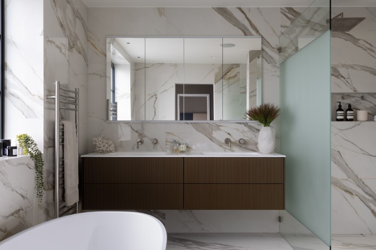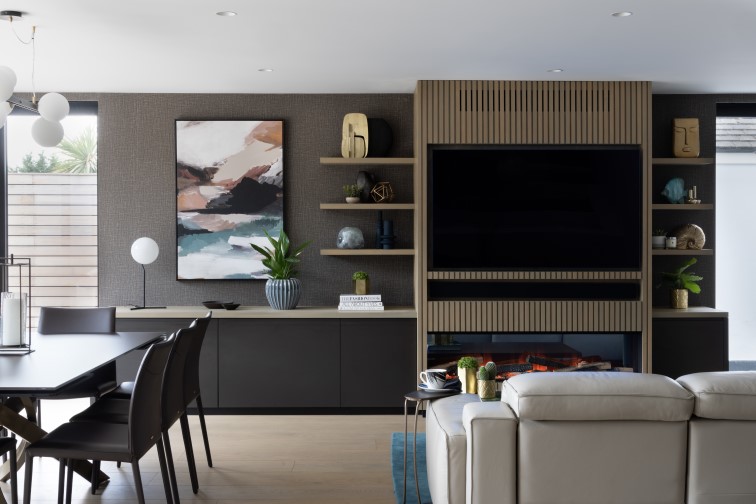Functionality was supported by bespoke joinery accommodating, for example, additional storage, TV sites and a coffee station. On the must-have list was a home office, an outdoor living space including kitchen, and an outbuilding to house gym or office as needed.