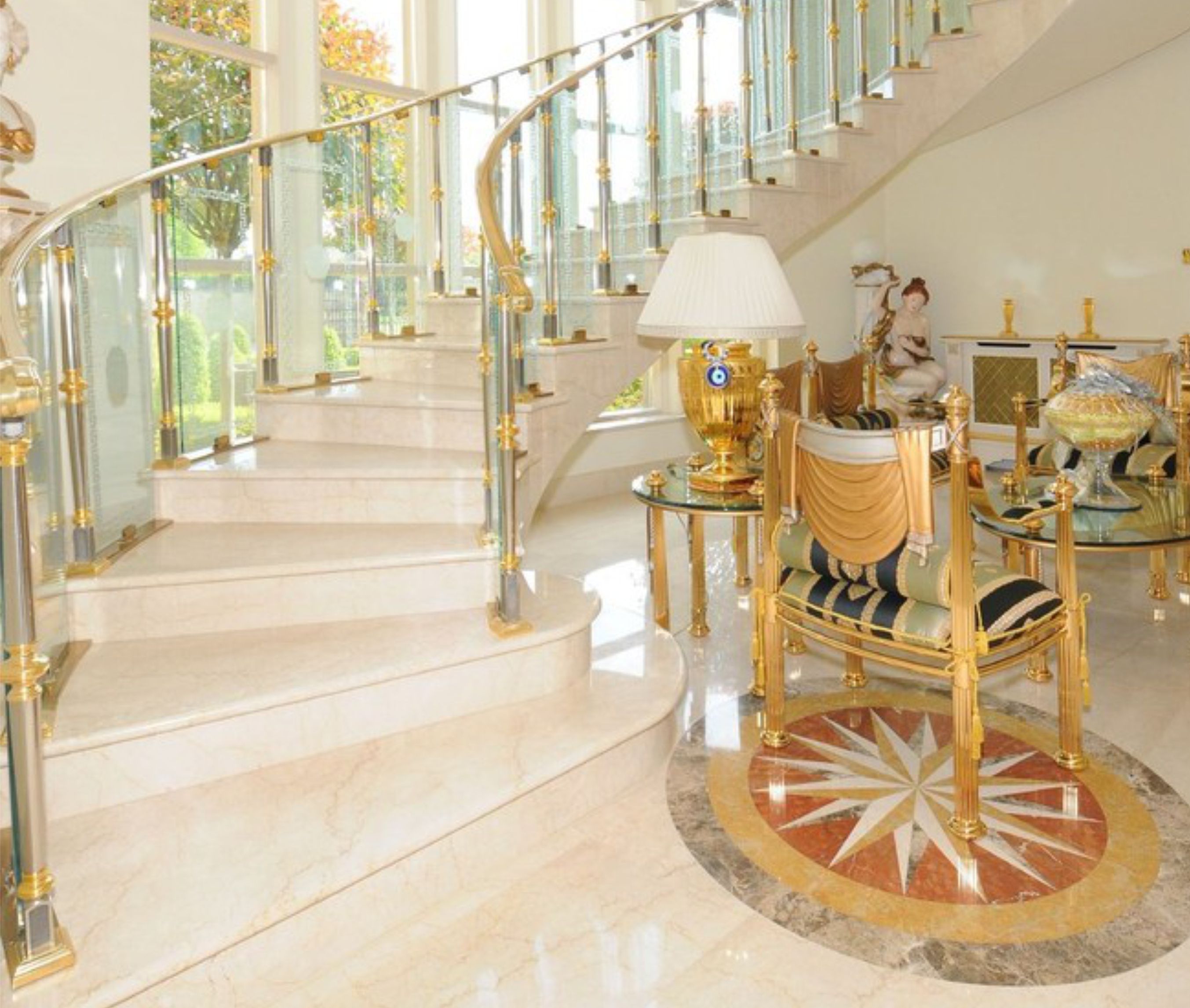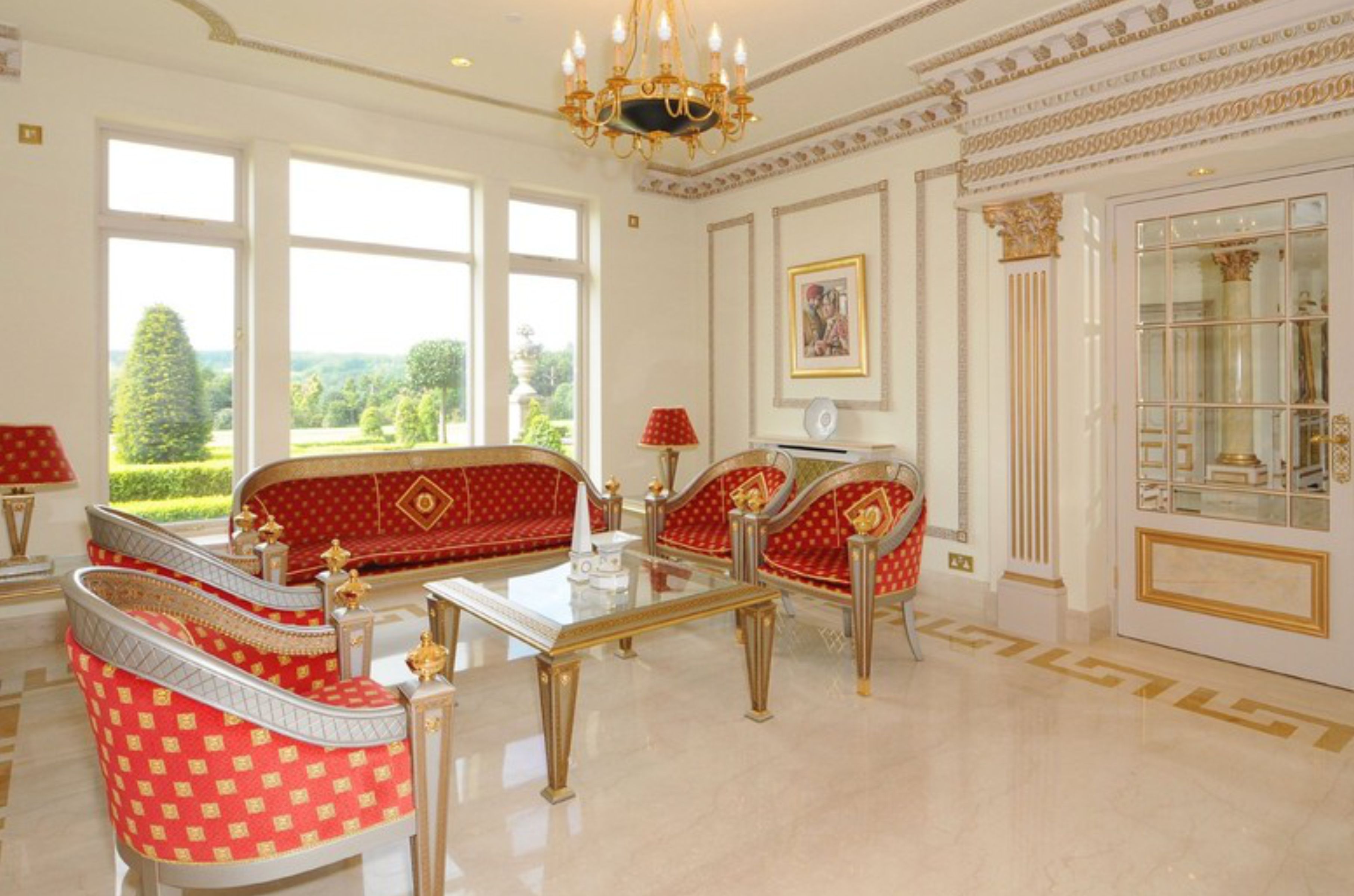 The inlaid marble floors were custom made in Italy and transported to the UK